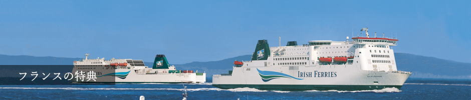 IrishFerries社の下記の路線のフェリーが30%OFF(キャビン追加料金には特典が適用されません)。