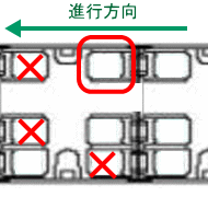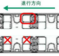 進行方向逆向きや通路側や他人に囲まれるテーブル付四人掛け座席を避けて確保すること。 |