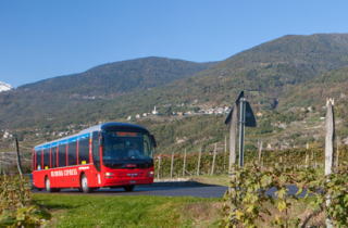 夏季にのみ運行するベルニナバス。ベルニナ急行の南の発着地 Tirano とスイスの避暑地である Lugano を結ぶれーティッシュ鉄道が運営するバスです。
