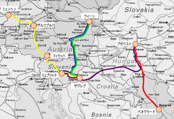 | ミュンヘン - リュブリアーナ − ザグレブ 間の国際特急(OBB EuroCity) |