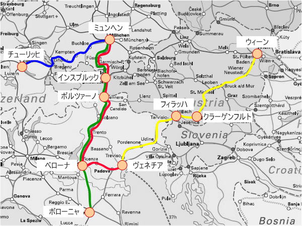 | ミュンヘン - インスブルック - ヴェローナ - ヴェネチア 間の国際特急(OBB EuroCity) |