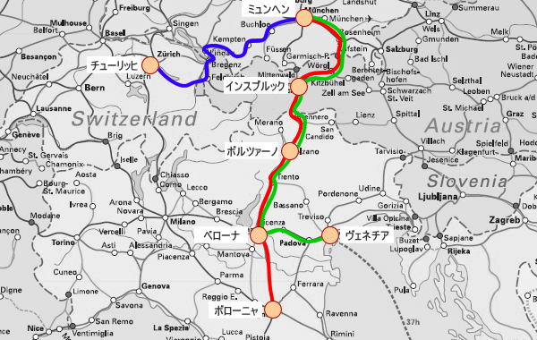 | ミュンヘン - チューリッヒ 間の国際特急(EuroCity) |