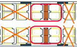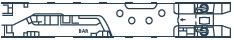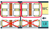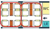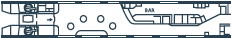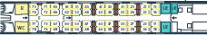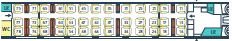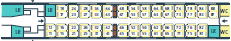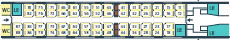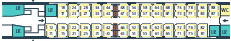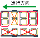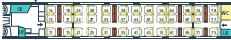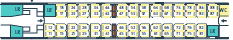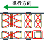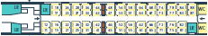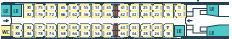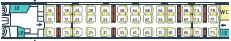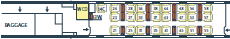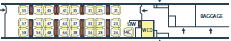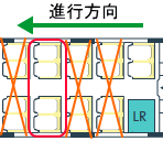 場所によっては荷物置き場近くの座席もあります。通常、荷物は座席上部の荷棚の上におきますが、スペースが小さいですが荷物置き場(左の図のLRが荷物置き場)も数か所に設置されています。荷物の盗難など心配な方には荷物置き場近くをお勧め。