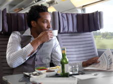 テーブル付一人掛け座席の向かい合わせ座席があるので、2名でご旅行の方はこの座席をお勧め。特に食事するときはテーブルを広く使えるので快適に食事ができます。