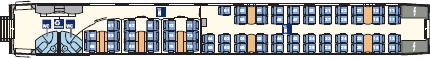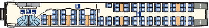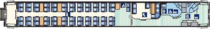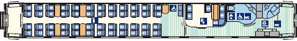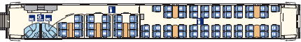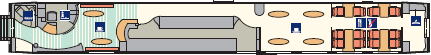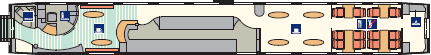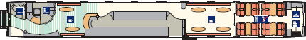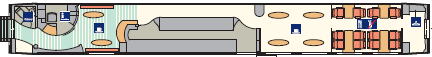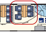 もし個室(コンパートメント)が満席の場合は、第二希望としてテーブル付四人掛け座席4名と通路挟んでテーブル付一人掛け座席の向え合わせの2名で予約することをお勧めします。一両に2か所だけこの座席があります。 |