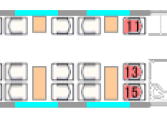 1等座席は海外へ輸出されている座席が限定されていて、左図の3席のみ日本へ輸出されております。11番座席がお勧め。ただ、1席のみしか輸出されいないので早い者勝ちです。