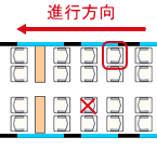 Type7機材の2等通常座席の車両は複数存在し進行方向が確約できません。せめて、景色の妨げとなる柱の位置を避けて確保することを。座席位置を確保できない会社もあるので切符を購入する時に注意。 |