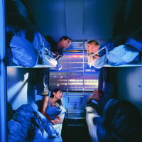 また、コネクティングルームにすることも可能です。ベッドのはしごの上り下りが厳しい方にとっては1人部屋を二部屋確保してコネクティングルームにすることで安心して夜行列車の旅を楽しめます。荷物が多き方にもコネクティングルームはお勧めです。 |