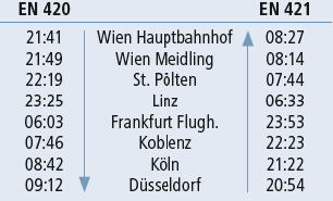 朝食サービスの有無、寝台車両の等級は情報元のヨーロッパ鉄道チケットセンターで購入した場合のみに適用されます。ヨーロッパ鉄道チケットセンター以外の会社で購入する場合は、朝食サービスの有無、寝台車両に適用される等級が違う場合がありますので、購入する会社でご確認ください。 |