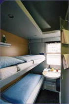 クシェット車両はベッドにカーテンがありません。他人に寝顔を覗かれにくい上段をお勧め。 |