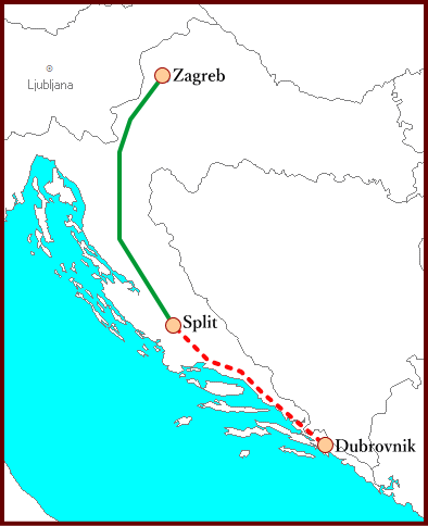 クロアチアの首都のザグレブから世界遺産ドゥブロブニクの玄関口のスプリットまでの夜行列車。玄関口と言っても、スプリットからドゥブロブニクまではバスで約4時間〜約5時間かかります(1車線道路の為、所要時間に幅があります)。
