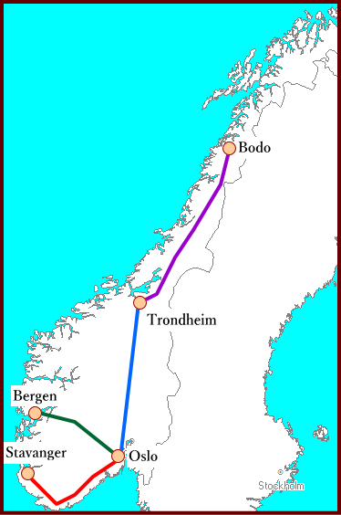 ノルウェー国内に4つの路線に夜行列車が運行されていいます。その中でもっとも人気が高いのは Bergen - Oslo 間の夜行列車。ソグネフィヨルド観光をしながらBergenに到着後、再び出発地のOsloへ戻る場合に利用するのが便利です。