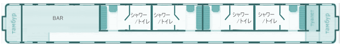 の場合あり)。また、車両内に共同シャワーがある機材もありますが、全路線にあるわけではないので必ずシャワーを浴びたい人は、シャワー付き個室を選択しておくと安心。