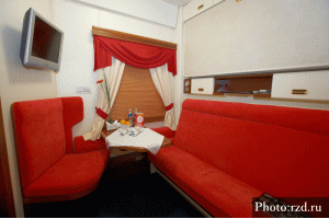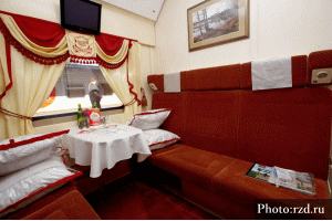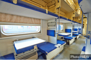 尚、モスクワ - アドラー間(列車番号104)はダブルデッカー車両(2階建機材)が導入されているので、2階席を確保すると比較的走行音が小さくなり過ごしやすいので、2階席を予約すること。
