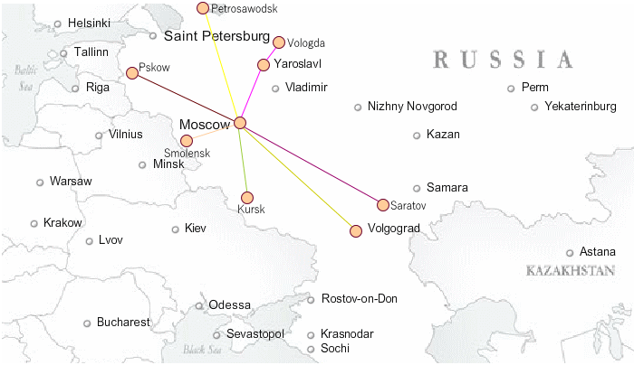 RZDナイトトレインは、ロシア国内線の夜行列車を意味します。ただ、シベリア地域を通る列車は、「シベリア鉄道」として別のページでご案内します。ここではシベリア鉄道以外のロシア国内の夜行列車をご案内します。