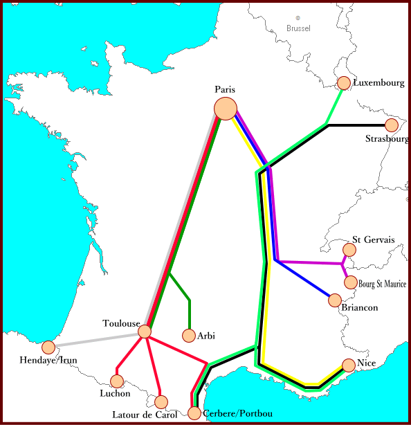 | Paris / - Irun(Hendaye) / Briancon / BourgStMaurice / StGervais |