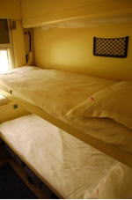 クシェット車両はベッドにカーテンがありません。他人に寝顔を覗かれにくい上段をお勧め。 |