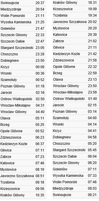 | Warszawa/Krakow - Gdansk/Gdynia/Kolobrzeg |