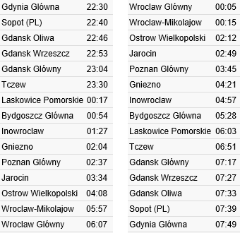 ポーランド国内には夜行列車が多く存在します。高速列車網が少ないためこの夜行列車をうまく使って効率よく経済的に移動することが可能です。