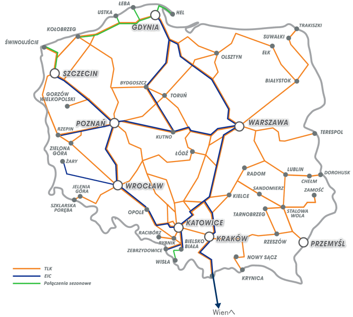 EIC機材でカバーしきれないポーランドの他に駅はTLK機材によってカバーされています。
