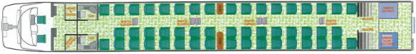オープンサロンタイプの通路挟んで1席+2席の配置。車両の中心に1か所だけテーブル付座席があります。座席は固定されていてJRの新幹線のように回転しません。