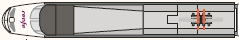 オープンサロンタイプで通路を挟んで1席+2席の配列。座席は回転しない固定型で1両に2ヵ所だけテーブル付の向かい合わせ座席がある。