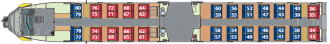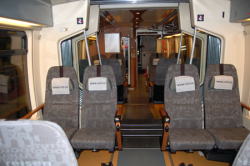 座席数は78席。NSBインターシティのようなコンフォート座席はありませんが、車内販売で簡単な軽食を購入することができます。振り子式ですのでカーブの多いノルウェー国内を快適に走行します。 |