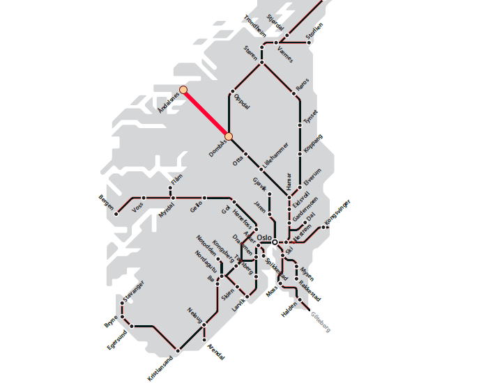 ラウマ鉄道はノルウェーで最も素晴らしい鉄道の一つです。Oslo駅からNSBインターシティで約3時間でDombas駅に到着します。Dombas駅からAndalsnes駅までの区間がラウマ鉄道になります。
