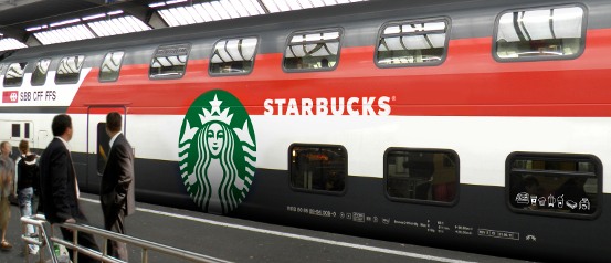 2013年11月21日から2014年8月まで“スタバ列車”が登場。もちろんバリスタも常駐。スターバックスのロゴにラッピングされた車両は1階がテイクアウト用、2階がテーブル席になってます。