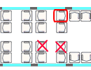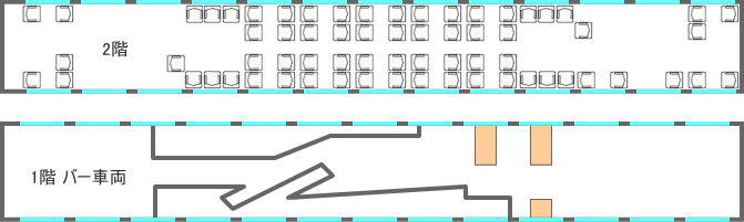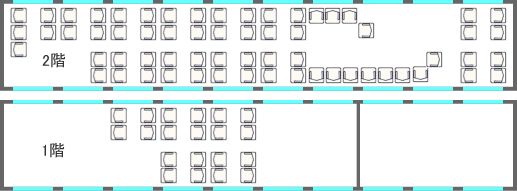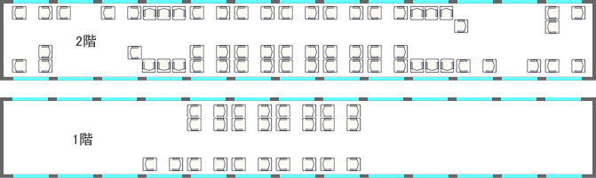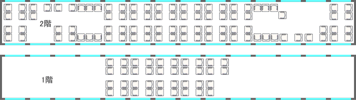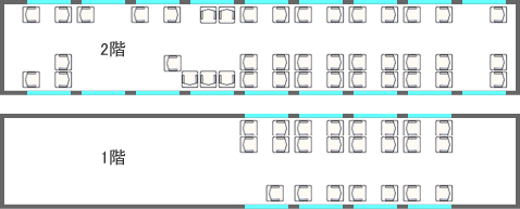横に2席+2席の配置でオープンサロンタイプ。ほとんどの座席が対面座席になっています。