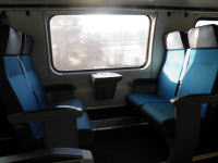 1等座席と同様に2階建て車両。テーブル付一人掛け座席は2等座席に少なく、ほとんどの座席がテーブル付四人掛け座席(テーブルは小さいです)になっています。