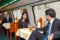 昨今のヨーロッパ鉄道もJRと同様に食堂車少なくなり、飛行機の機内食のような座席に食事が運ばれるタイプが多くなってきました。ただ、このIC2000には食堂車(26席)が連結されており、日本からも座席の事前予約が可能です。スイスの長閑な風景を眺めながら食堂車での旅を楽しむことをお勧めします。