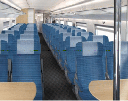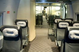 全ての車両に荷物用スペース・ハンガー付きコート掛けがあります。各座席にブックライトもあり、足載せ台も完備されています。この機材はドイツのシーメンスが製造しており、ベースはドイツ鉄道のICE3.。ICE3の8両編成に対しサプサンは10両編成で運行しています。
