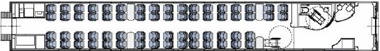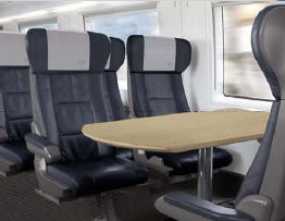 布張りシートです。全席禁煙で食サービスはありませんが、食堂車で食事を購入することは可能。ただ、積み込む食事の量に制限があるので早めに購入することをお勧めします。Wifiは有料。