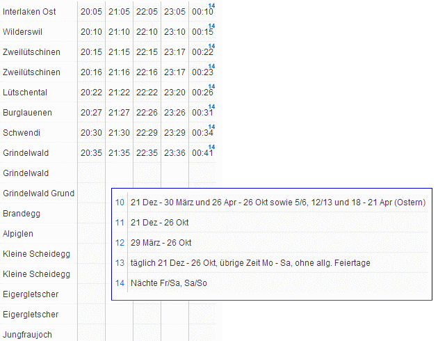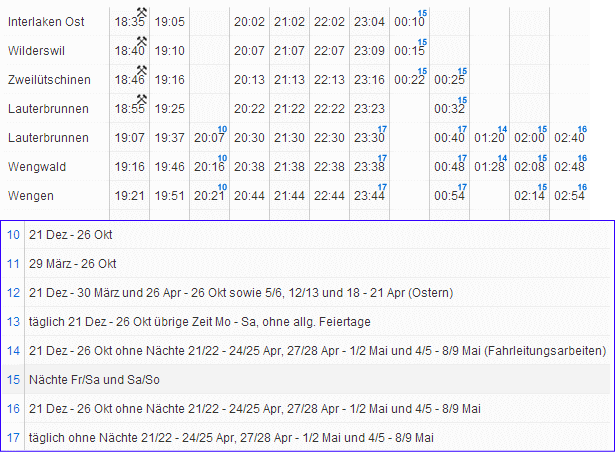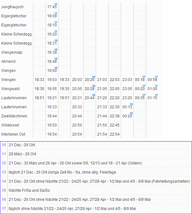 ※1 ラウターブルネン(Lauterbrunnen)-ウェンゲン(Wengen)間のみ無料 |