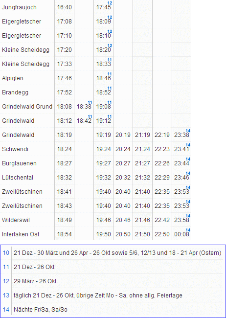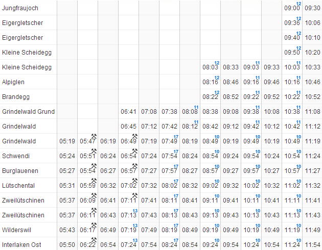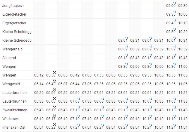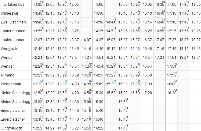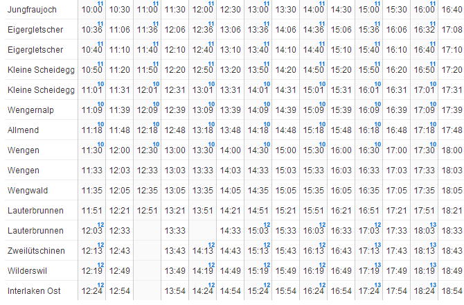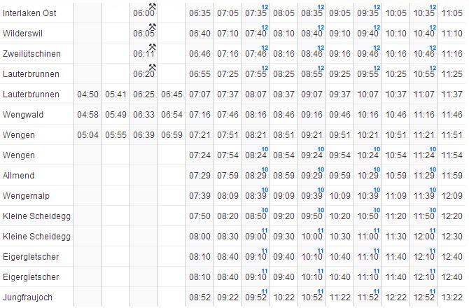 | ユングフラウヨッホ → クライネシャディック → ウェンゲン → ラウターブルネン → インターラーケン |