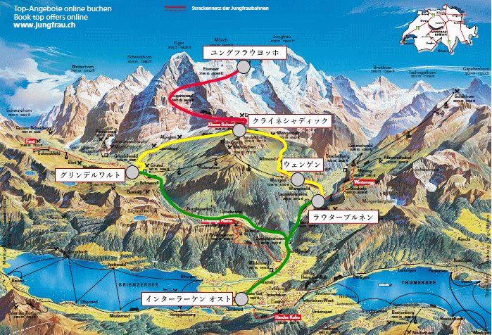 | インターラーケン → ラウターブルネン → ウェンゲン → クライネシャディック → ユングフラウヨッホ |
