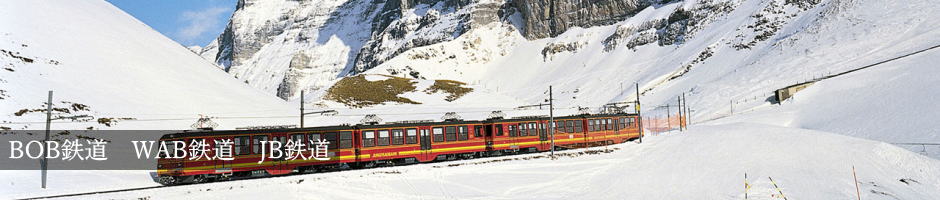 最初にベルナーオーバランド鉄道(BOB鉄道)、次にウェンゲンアルプ鉄道(WAB鉄道)、最後にユングフラウ鉄道(JB鉄道)。