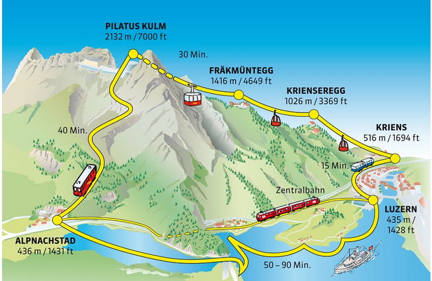 ピラトゥス鉄道はスイスのルツェルン近郊にあるピラトゥス山に作られた世界一の急勾配を上る登山鉄道。ピラトゥス山の麓にある駅へは、ルツェルン-インターケン-エキスプレスか湖上船でのアクセスが可能。