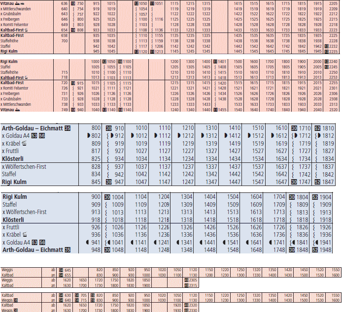 リギ山は古くから貴族の高級保養地としてホテルや別荘が多い場所。山頂のリギクルムへはアルトゴルダウ/ウェッジス/フィッツナウの3方向からアクセスが可能。