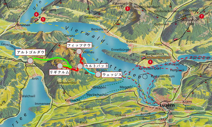 フィッツナウの高級ホテルに宿泊するも良し、最寄りのルツェルンに宿泊するも良し、スイス中央部においてベルナー地区に続いて最高の観光ポイントです。シーズンになると蒸気機関車も導入されます。