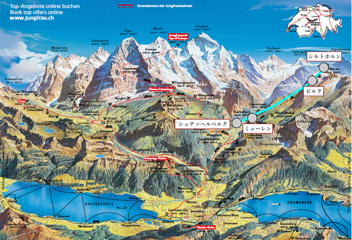 BLM鉄道を利用してミューレンに到着後、シルトホルンへ |