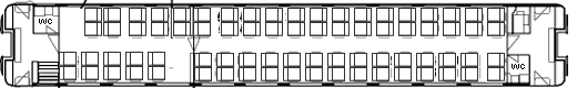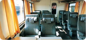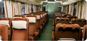 4種類の2等座席があります。座席の色が違うなど各車両に特徴があります。すべてオープンサロンタイプの座席を使用しており、その中でも1種類だけ、通路挟んで1席+2席の座席配置(左下の写真)の車両があります。 他の車両に比べて座席がゆったりしており、料金も他の車両と同一料金なのでお勧めです。
