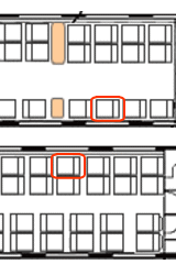 ●ポイント:通路挟んで1席+2席の座席配置の車両があれば一人掛け座席で確保すること